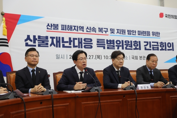 특히 이번 회의에서는 산불로 인해 심각한 국가적 위기에 처한 상황을 고려해, △가용 가능한 국가자원의 총동원 필요성의 공감대 확인, △경북 안동, 청송, 영덕, 영양 지역 등에 정부의 특별재난지역 선포 확대 건의,△이재민에 대한 주거 및 의료, 심리상담 등의 실질적 지원책 강화,△행정안전부 재난특별교부세를 활용한 지자체 지원, △향후 추경 시에 재난대응 예비비 대폭 증액, △당 차원의 의연금 모금건의,△산불 실화 등에 대한 처벌강화 계획 또한 밝혔다.