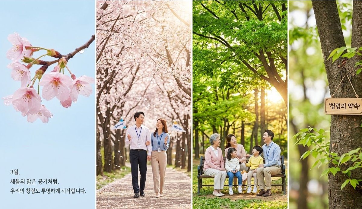 지난 3월에는 ‘새봄의 맑은 공기처럼, 우리의 청렴도 투명하게 시작한다’라는 문구로 산뜻한 시작을 알렸으며 4월에는 ‘만개하는 꽃잎처럼, 우리의 청렴도 활짝 피어납니다’라는 감성적인 문구를 공유하며 일상 속 청렴 실천 의지를 다지고 있다.