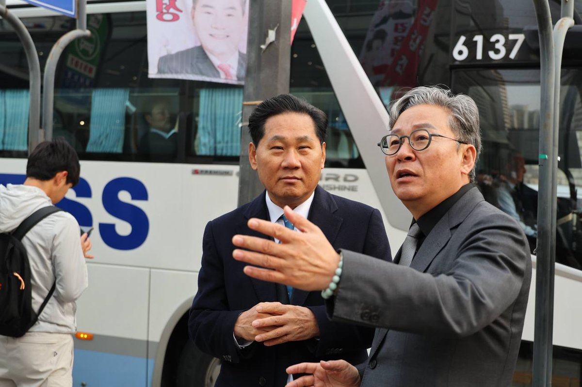 [충청25시] 손명수 의원은 4월 3일 오전, 김용석 대도시권광역교통위원장과 함께 용인시 기흥구에 위치한 청현마을 수원신갈IC 정류소를 찾아 출퇴근길 교통 현장을 점검하고 시민들의 고충을 직접 청취했다.