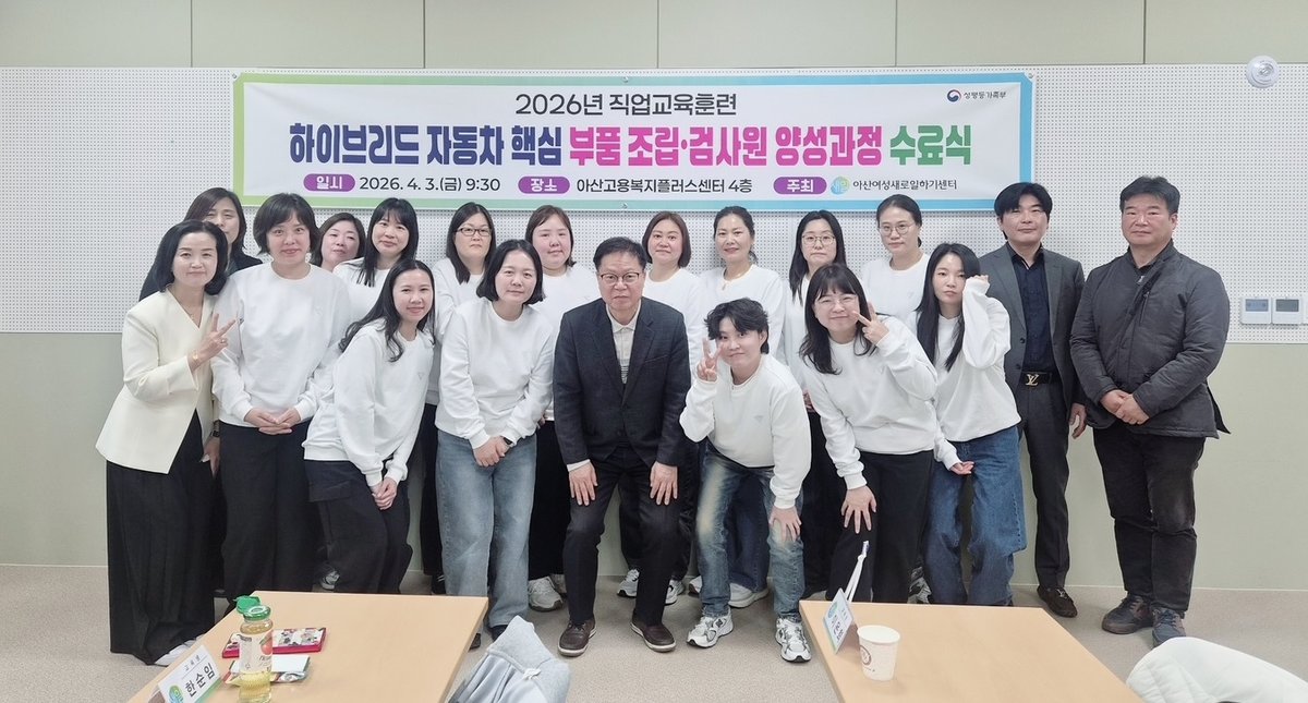 [충청25시] 아산시와 아산여성새로일하기센터는 지난 3일 지역 특화 전략 산업 맞춤형 교육인 ‘하이브리드 자동차 핵심 부품 조립 검사원 양성 과정’ 수료식을 개최했다.