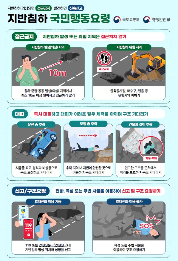 [충청25시] 국토교통부는 4월 1일 제정된‘지반침하 재난 위기관리 표준매뉴얼’을 토대로 지반침하 재난에 대한 범정부 대응을 본격화한다.