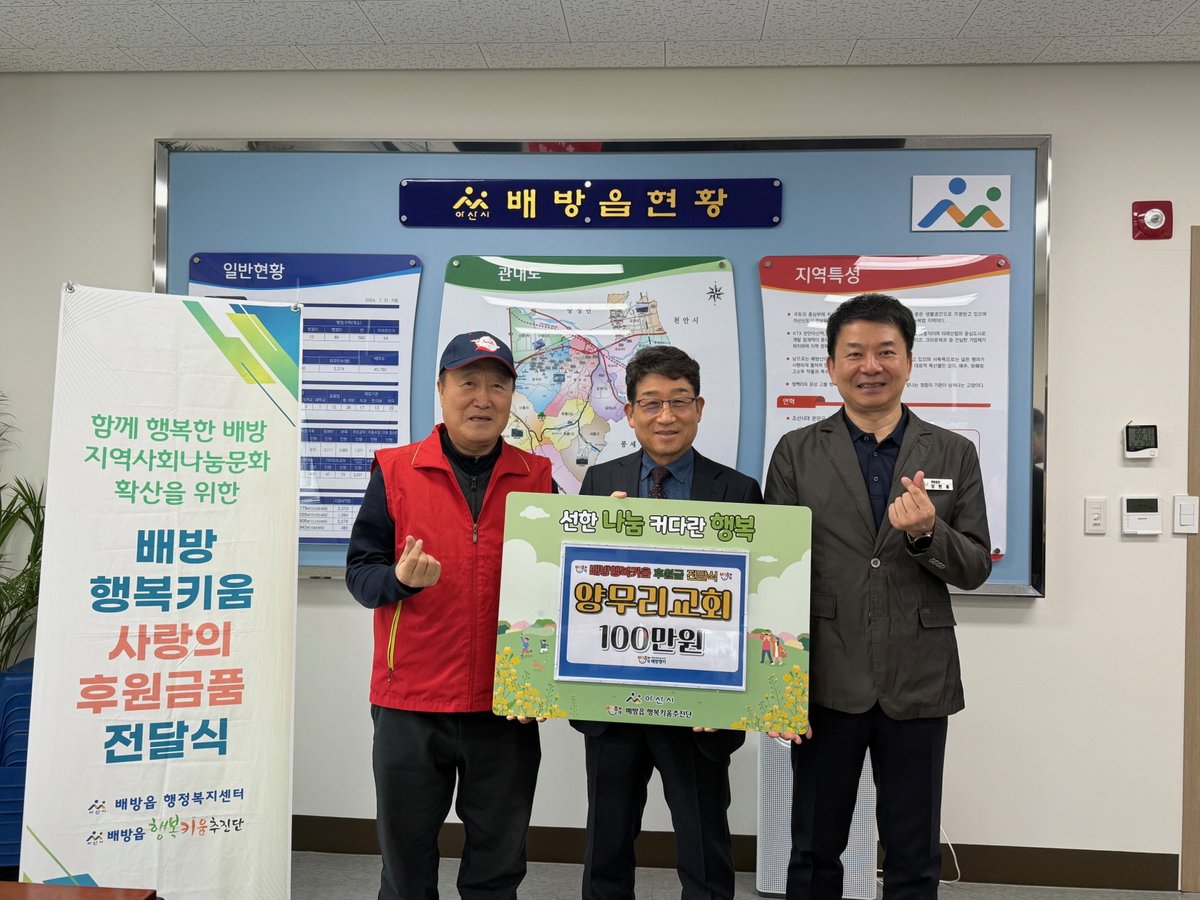 이날 전달된 후원금은 배방읍 행복키움추진단을 통해 취약계층을 위한 행복키움 사업에 사용될 예정이다.