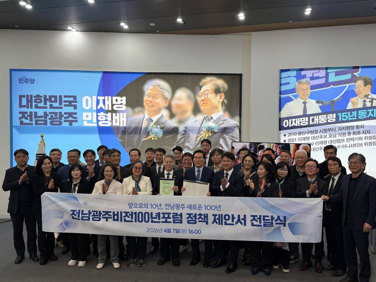 [충청25시] '전남광주비전100년포럼‘은 지난 7일 더불어민주당 전남광주통합특별시장 경선 후보인 민형배 국회의원에게 정책 제안서를 공식 전달했다고 8일 밝혔다.