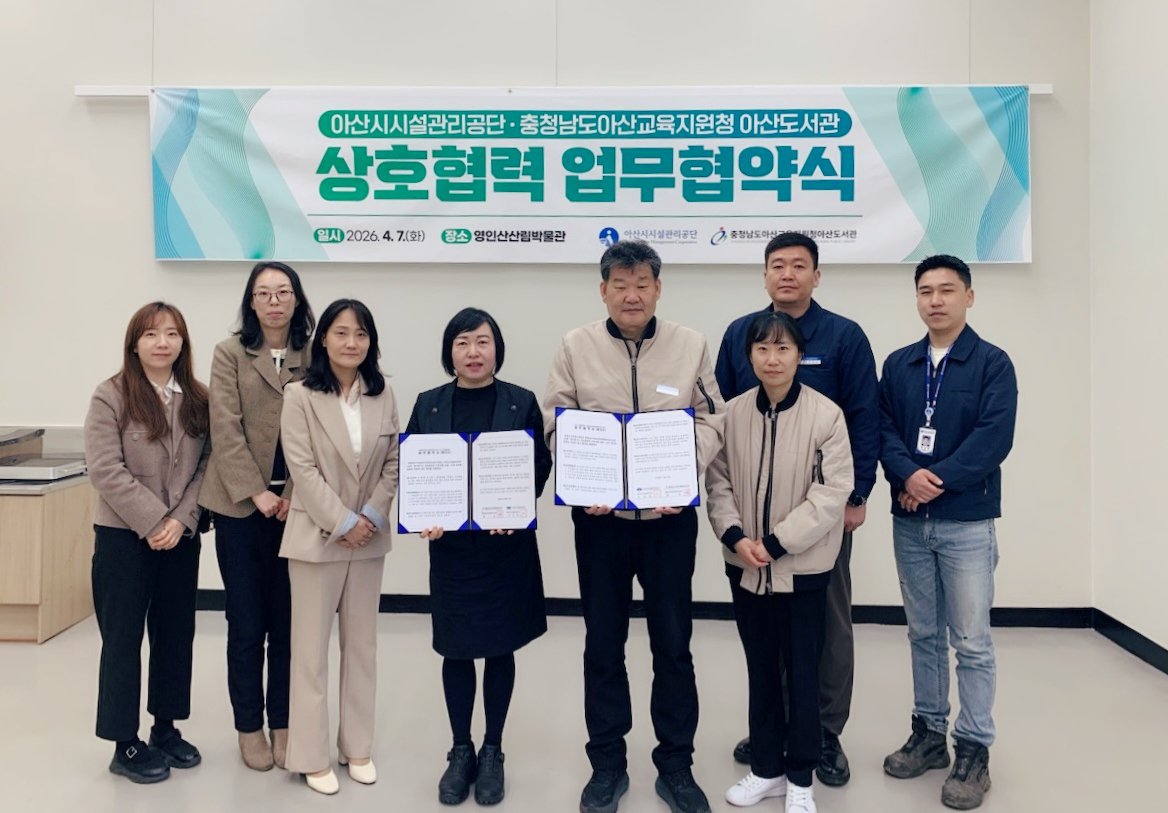 [충청25시] 충청남도아산교육지원청아산도서관은 지난 4월 7일 아산시시설관리공단 영인산 산림박물관과 독서문화 및 산림 환경 교육 활성화를 위한 업무협약을 체결했다.
