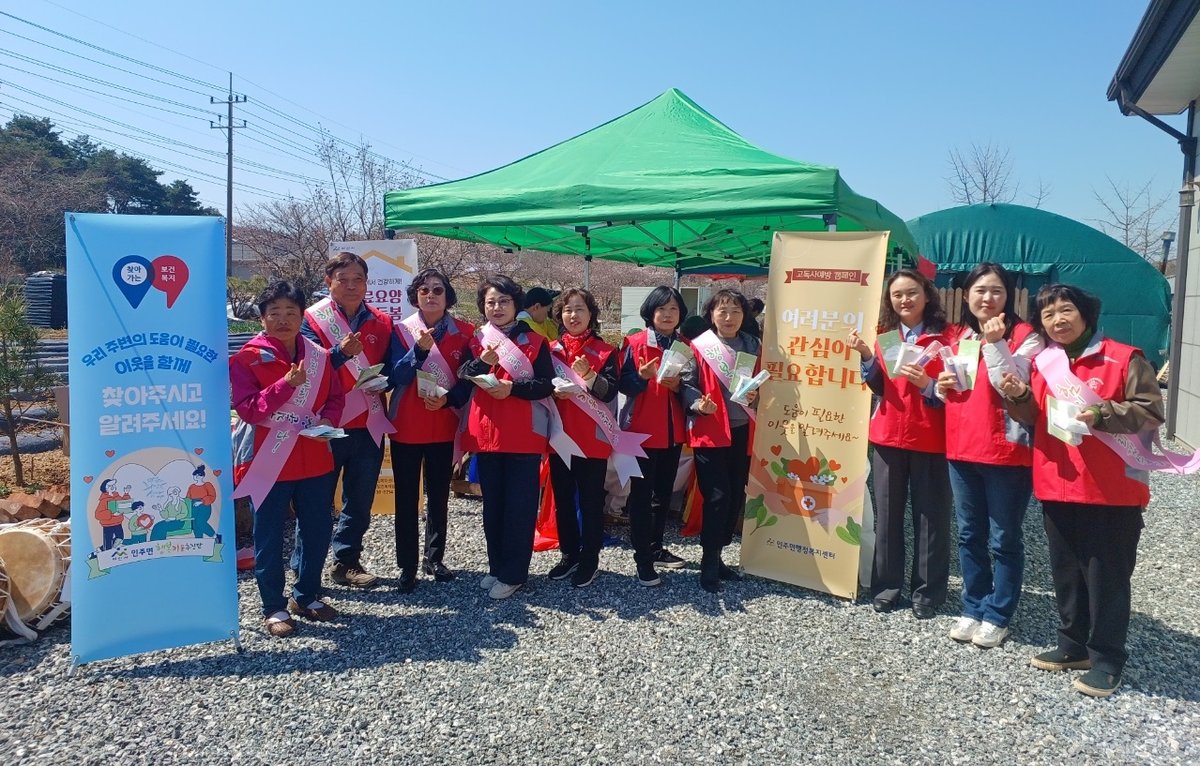 [충청25시] 아산시 인주면 행복키움추진단이 지난 8일 제4회 냉정리 벚꽃축제 현장에서 1인 가구 중장년 및 노인의 은둔 고독사 예방과 복지 사각지대 발굴을 위한 홍보 캠페인을 펼쳤다.