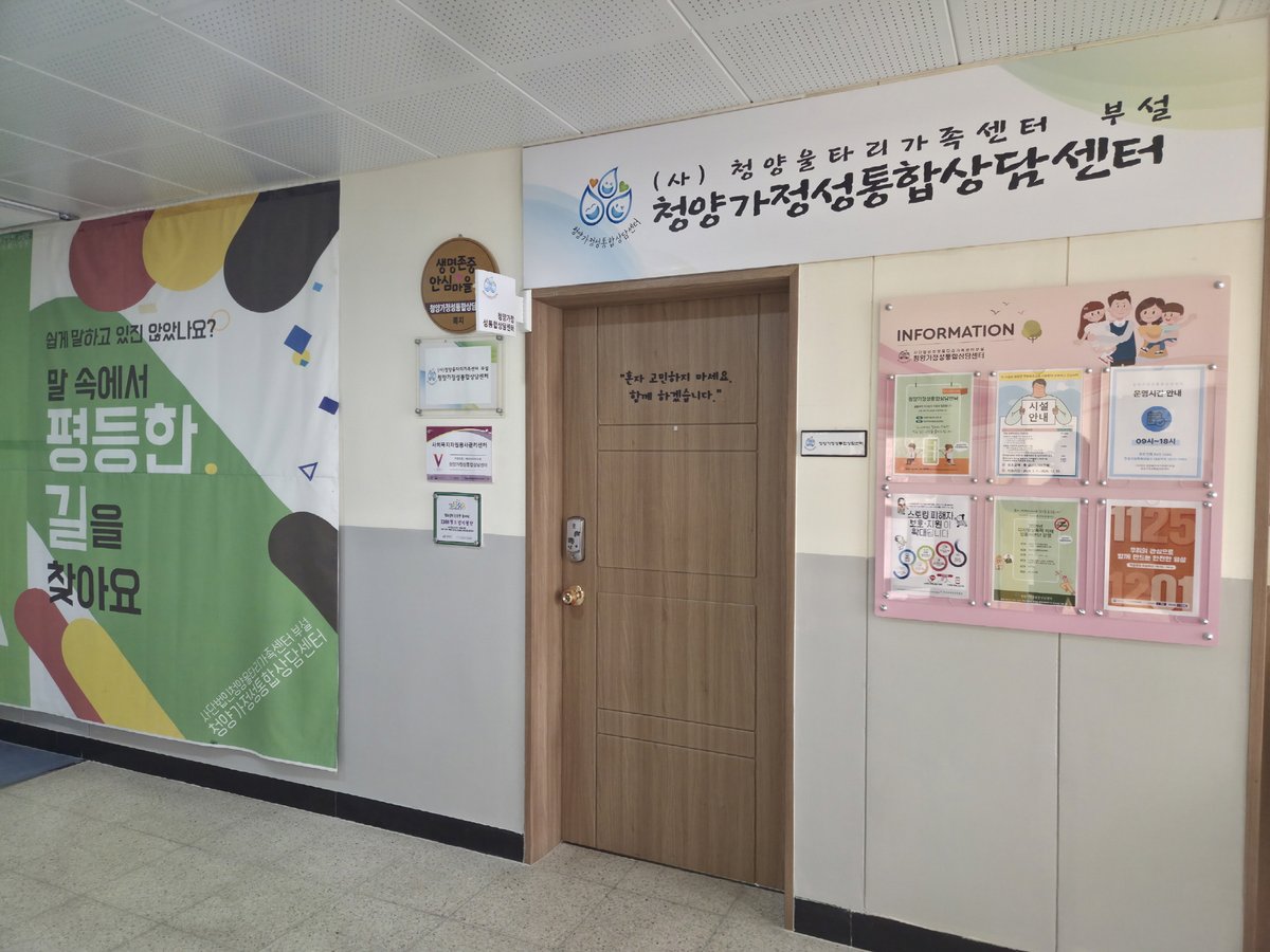 [충청25시] 청양가정성통합상담센터가 가정폭력과 성폭력은 물론 최근 사회적 문제로 대두된 교제 폭력, 스토킹 등 다양한 젠더폭력 피해자를 위한 전문 지원기관으로서 피해자들의 신속한 일상 복귀를 돕고 있다.
