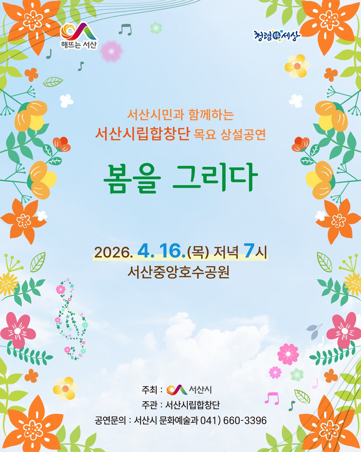 김기윤 서산시 문화예술과장은 “이번 공연을 통해 봄의 정취를 만끽하며 지친 일상에서 잠시 힐링하는 시간을 가지시길 바란다”며 “앞으로도 시립합창단의 다양한 활동을 통해 시민들의 문화 접근성을 더욱 확대해 나가겠다”고 말했다.