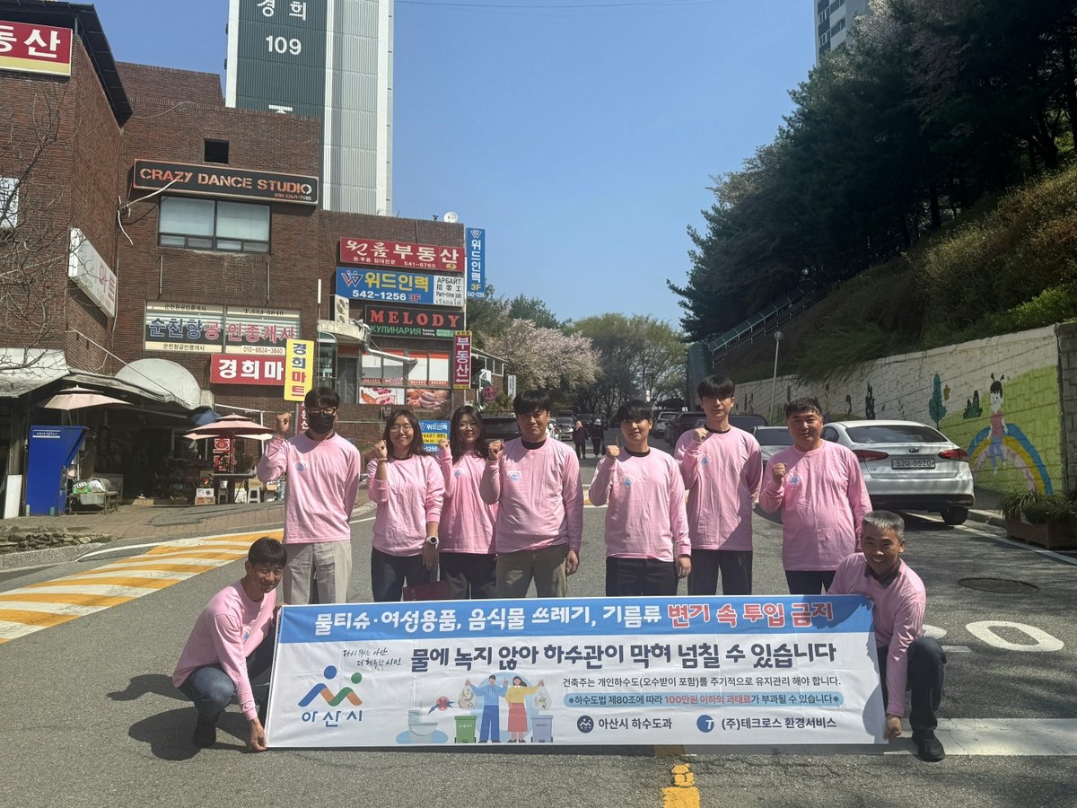 이날 시 관계자들은 신창면 순천향대 인근 상가 밀집 지역과 주거 단지를 방문해 홍보물을 배부하고 물티슈 · 폐식용유 · 음식 찌꺼기 등 하수 역류의 주요 원인이 되는 오물의 투입을 금지를 안내했다.