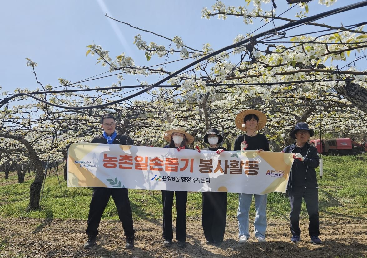 [충청25시] 아산시 온양6동이 본격적인 농번기를 맞아 일손 부족으로 어려움을 겪고 있는 관내 배 재배 농가를 찾아 농촌 일손 돕기 봉사활동을 펼쳤다.