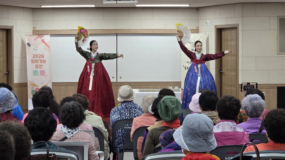 단원들은 어르신 눈높이에 맞춘 화려하고 우아한 몸짓을 선보이며 참석자들로부터 큰 호응을 얻었다.