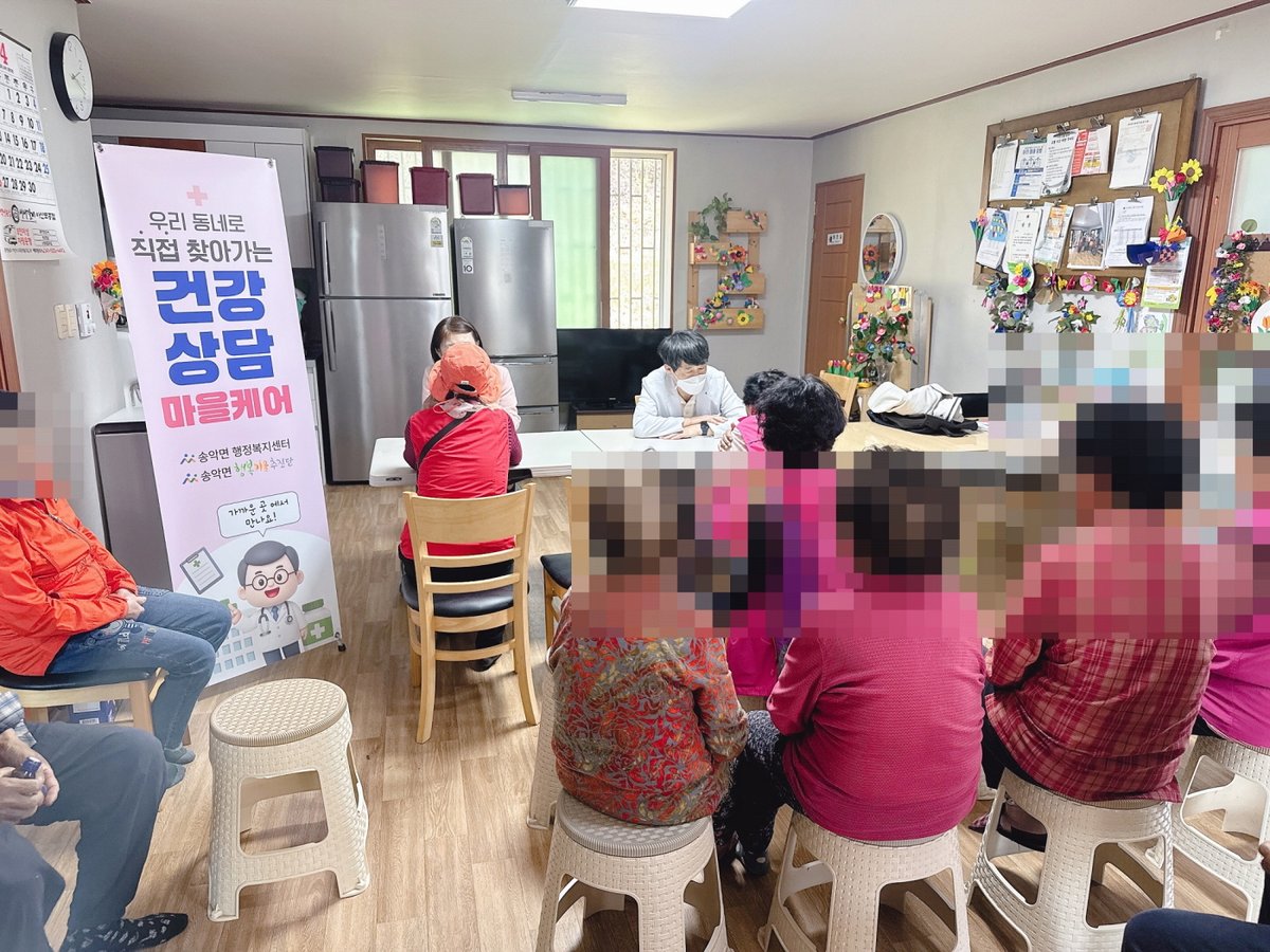 [충청25시] 아산시 송악면은 지난 16일 강장2리 마을회관에서 ‘건강상담 마을케어’ 사업을 실시했다.