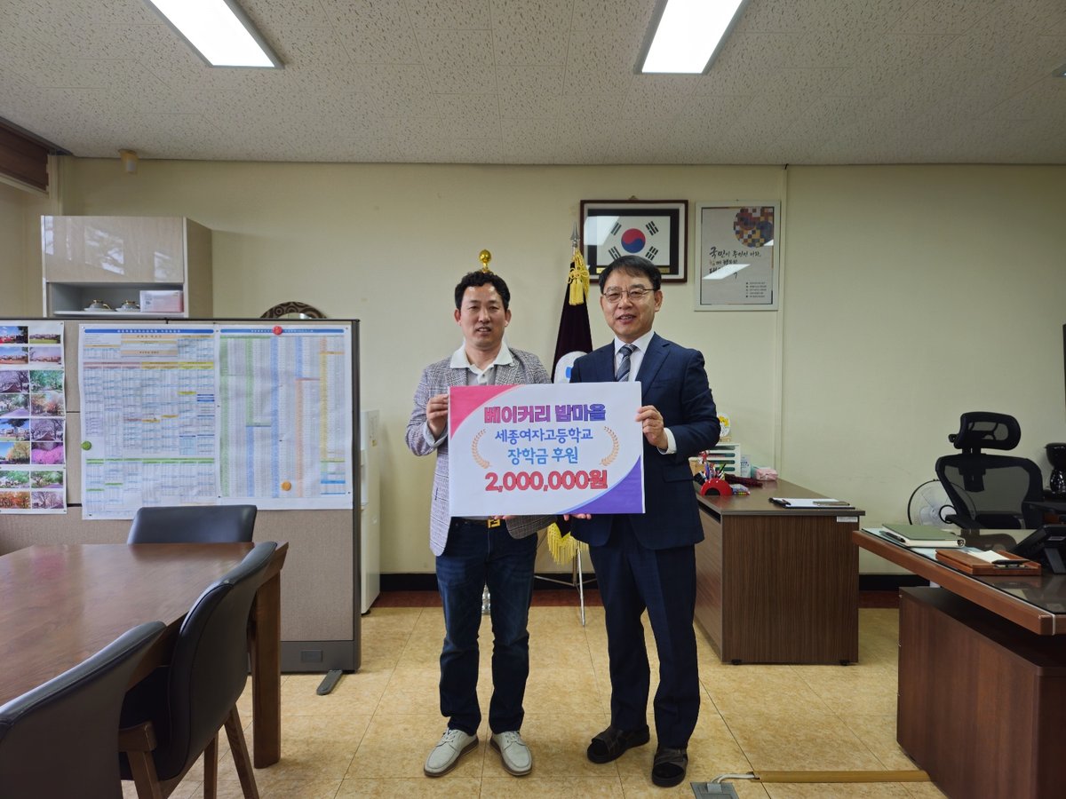 [충청25시] 세종여자고등학교는 베이커리 밤마을 김인범 대표가 학생들을 위해 장학금을 전달했다고 21일에 밝혔다.