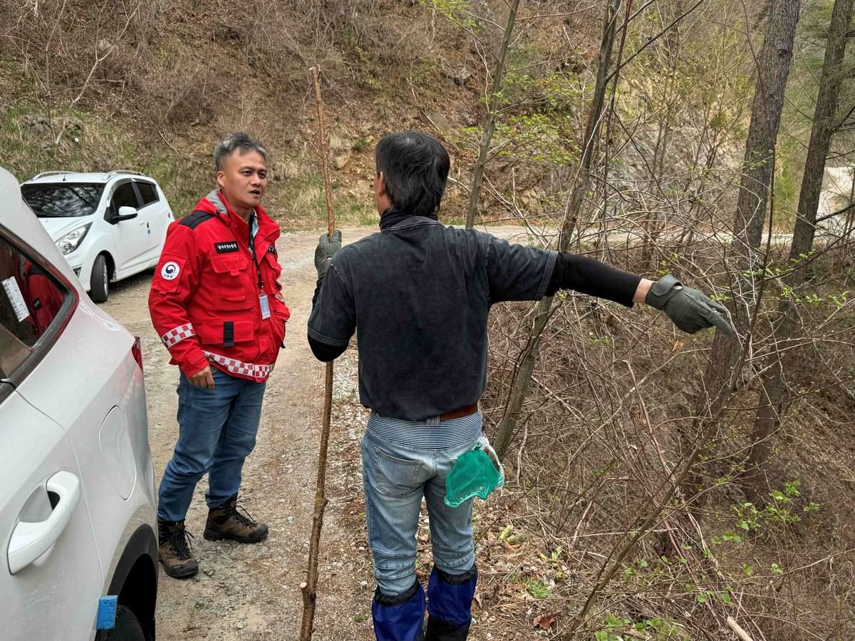 산림청 관계자가 봄철 산나물 불법 채취 단속을 하고 있다
