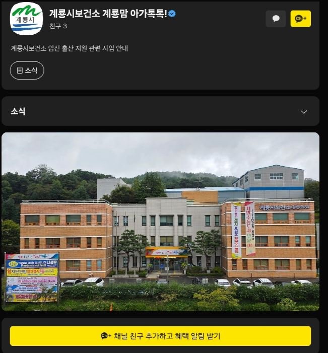 시민은 카카오톡에서 ‘계룡맘 아가톡톡’을 검색해 친구로 추가하면 별도 앱 설치 없이 임신·출산·양육 지원 정보를 손쉽게 안내받을 수 있다.