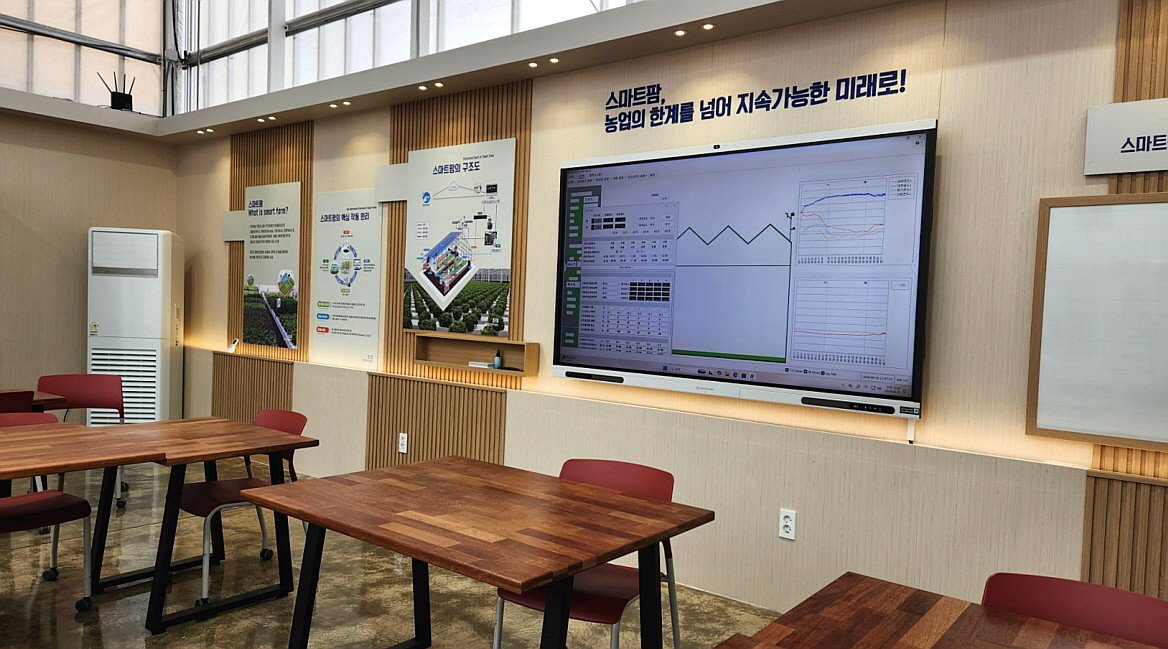 투명한 벽을 사이에 두고 재배 온실과 실습 공간을 연결해, 학생들이 실제 작물의 생육 상태를 실시간으로 관찰하며 센서값과 구동 장치를 제어할 수 있는 ‘현장 밀착형 교육’ 시스템을 구현했다.