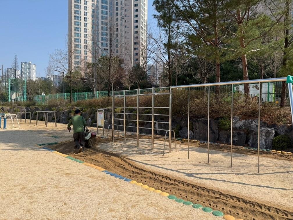 모래 놀이터 소독은 △표면 이물질 제거 △모래 뒤집기 △고온 스팀 살균·소독 △놀이터 평탄화 순으로 진행된다.