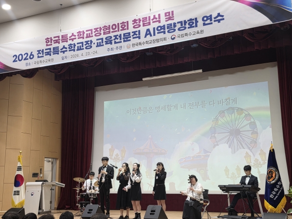 특히 4월 23일에 국립특수교육원에서 열린 ‘2026 전국특수학교장·교육전문직 AI 역량 강화 연수’에서는 전국의 특수교육 관계자 200여명이 참석한 가운데 축하 공연 무대에 올랐다.