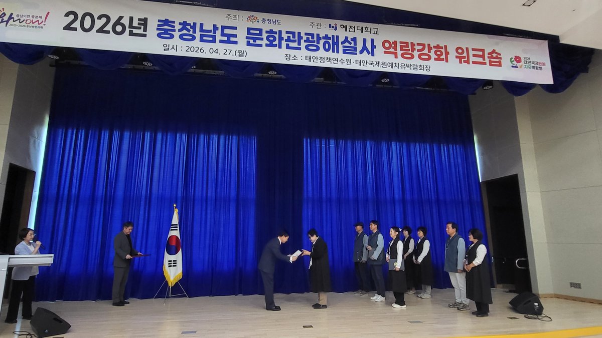 [충청25시] 충남도는 27일 태안 나라키움 정책연수원 대강당에서 충남 문화관광해설사 역량 강화 워크숍을 개최했다.