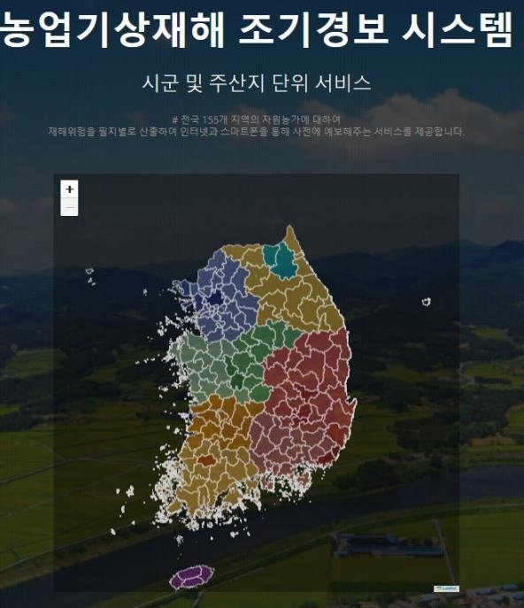 ‘농업기상재해 조기경보서비스’는 전국 155개 지역의 농가를 대상으로 필지별 재해 위험을 산출해 인터넷과 스마트폰을 통해 사전에 예보하는 시스템이다.