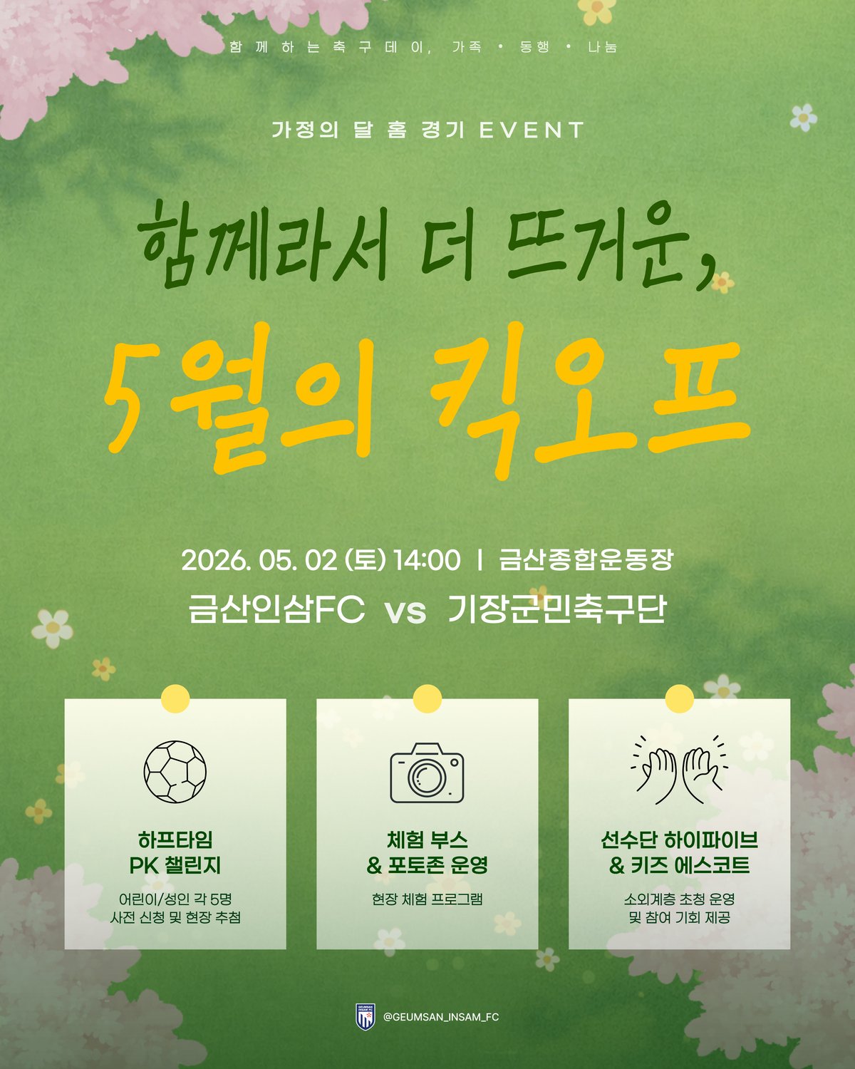 경기일정 및 이벤트 신청에 관한 자세한 내용은 금산인삼에프씨 인스타그램 채널을 통해 확인할 수 있다.
