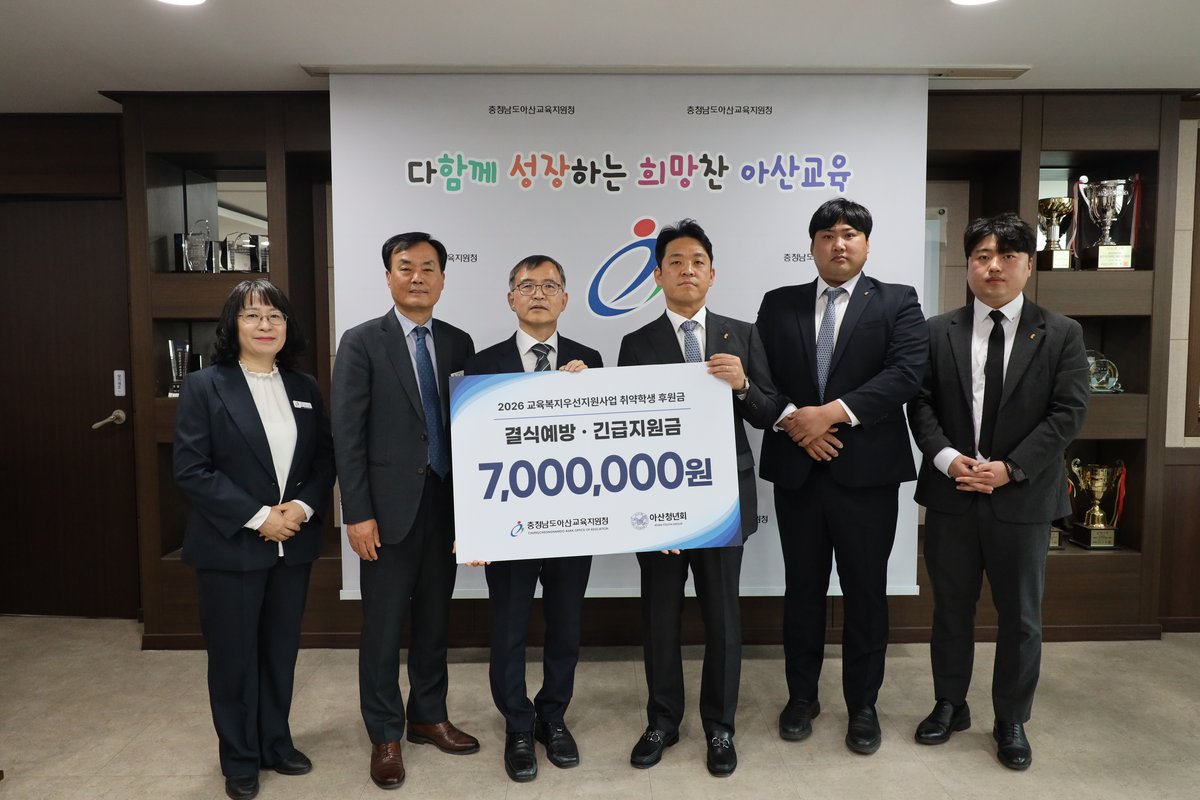 한편 아산교육지원청은 아산청년회와의 공고한 파트너십을 바탕으로 지역사회 민간 자원 연계를 활성화하고 모든 학생이 소외됨 없이 성장할 수 있는 촘촘한 교육복지 안전망을 구축해 나갈 방침이다.
