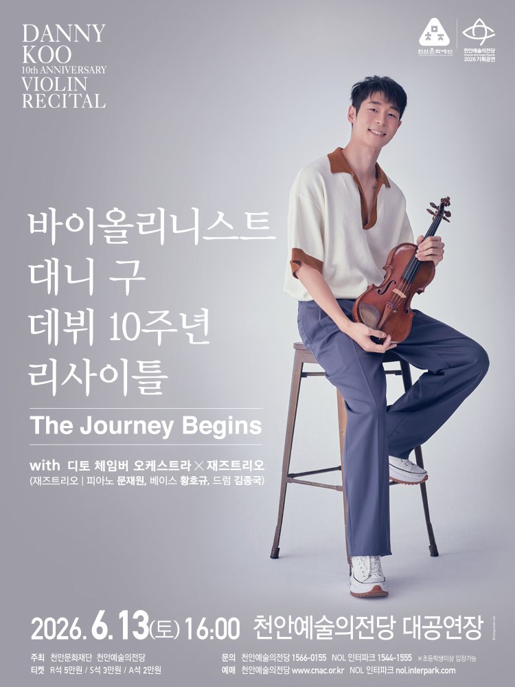 [충청25시] 천안문화재단은 오는 6월 13일 천안예술의전당 대공연장에서 바이올리니스트 대니 구 데뷔 10주년 기념 리사이틀 ‘The Journey Begins’를 개최한다고 29일 밝혔다.