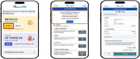 국세청은 납세자 중심의 신고 환경을 조성하기 위해 홈택스, 손택스, ARS 등 신고 시스템 전반을 고도화하고 신고 안내문을 대폭 개선했다.