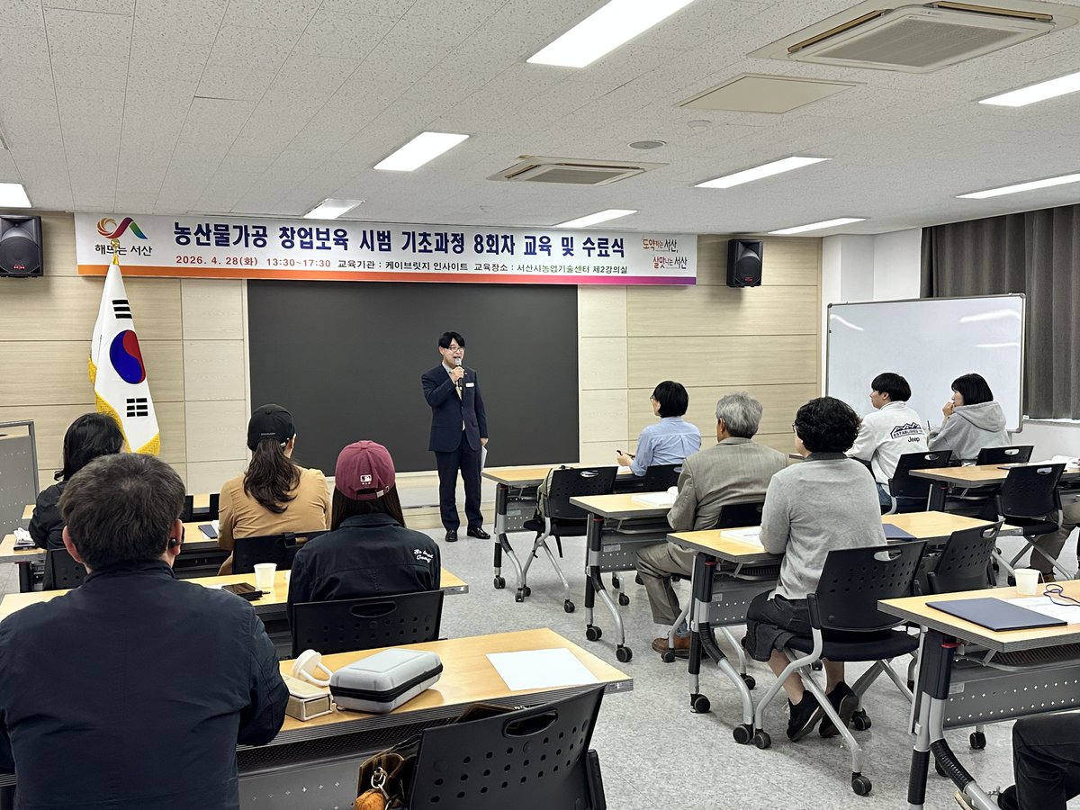 [충청25시] 서산시농업기술센터는 4월 28일 농산물가공 창업보육 기초과정 수료식을 개최하고 총 17명의 교육생에게 수료증을 수여했다.