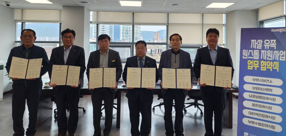 [충청25시] 보령시는 지난 29일 관내 응급의료기관 및 장례식장 5개소와 자살 고위험군에 대한 위기 대응 및 사후관리, 자살예방 공동 대응체계 구축을 위한 ‘응급실 기반 자살시도자 사후관리사업’및 ‘자살 유족 원스톱 지원 사업’업무협약을 체결했다고 밝혔다.