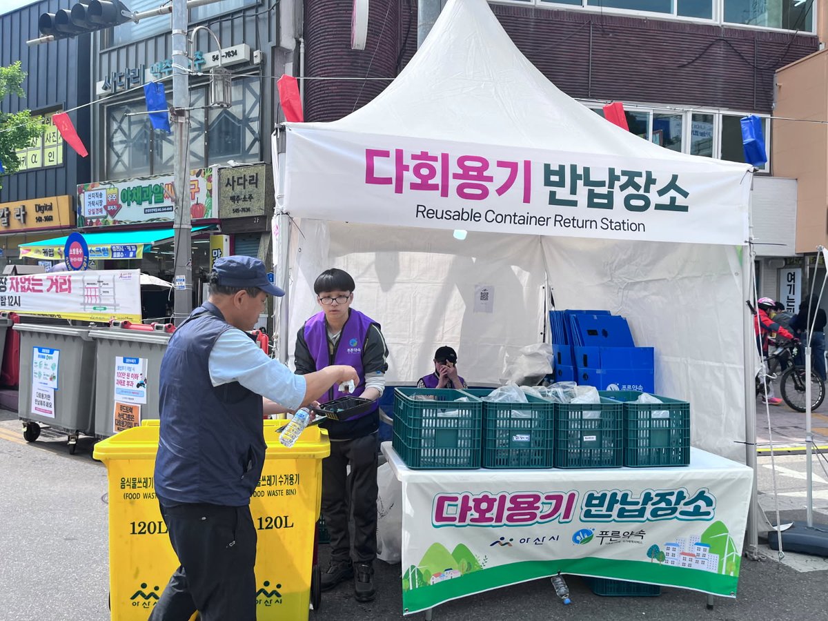 이번 축제에서는 먹거리 장터에서 발생하는 대량의 일회용 쓰레기 문제를 해결하기 위해 충남아산지역자활센터 다회용기 식기세척사업단과 협력해 ‘대여-수거-세척-공급’ 으로 이어지는 다회용기 순환 시스템을 가동한다.