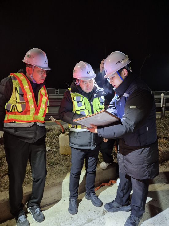 1일 야간에 진행된 관세척 현장을 찾은 임이택 수도사업소장은 진행상황 및 안전관리 실태를 점검하며 밤샘 작업을 진행하는 감독공무원 및 현장 근로자들을 격려했다.