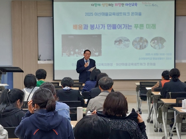 [충청25시] 아산교육지원청은 2025년 4월 8일 순천향대학교 향설생활관에서 ‘배움과 봉사로 만들어가는 푸른 미래’를 주제로 아산마을교육네트워크 온마을 제18차 배움자리를 열었다고 밝혔다.