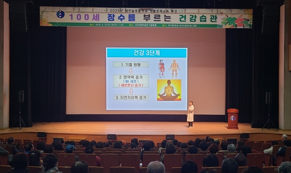 [충청25시] 대전평생학습관은 4월 16일 어울림홀에서 대전늘푸른학교 학습자를 대상으로 ‘100세 장수를 부르는 건강 습관’ 이라는 주제로 특별 강연을 개최했다.