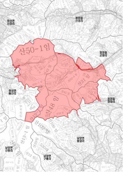[충청25시] 충청남도 산림자원연구소 이전 예정지 청양읍 군량리·정좌리, 남양면 봉암리, 화성면, 매산리 일대 504필지가 토지거래허가구역으로 지정됐다.