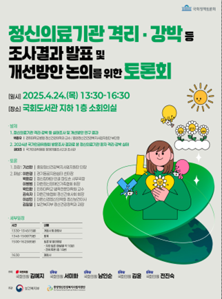 보건복지부 이상원 정신건강정책관은 “이번 국회정책토론회에서 전체 정신의료기관의 현황과 국가인권위원회의 20개 기관 조사 결과를 함께 살펴보고 정신의료기관 입원환자의 인권 보호와 치료환경 개선을 위해 보건복지부와 국가인권위원회가 더욱 긴밀하게 협력해 나갈 것이다”며 “조사·연구 및 각계 의견수렴 결과 등을 토대로 올해 상반기 중 정신의료기관 격리·강박 제도개선 방안을 마련할 예정이다”고 말했다.