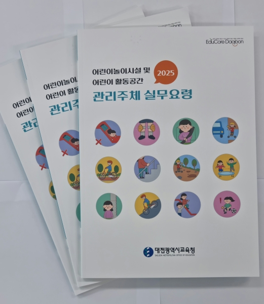 [충청25시] 대전시교육청은 4월 25일 어린이놀이시설 및 어린이활동공간의 안전관리 역량을 강화하기 위한 관리주체 교육을 온라인으로 실시하고 ‘어린이놀이시설 및 어린이활동공간 관리주체 실무요령’ 책자를 제작해 관내 공·사립 유치원, 초·특수·각종학교에 배부한다고 밝혔다.
