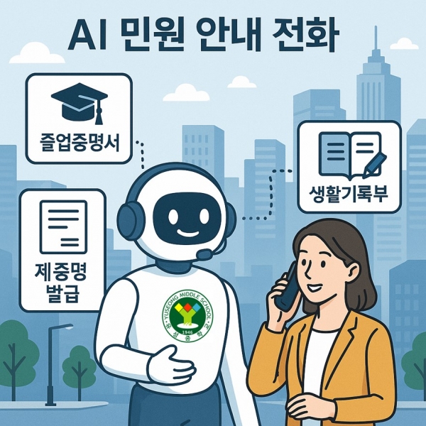 [충청25시] 유성중학교는 대전에서 학교 최초로 인공지능 기술을 접목한 AI 민원 안내 전화 서비스를 2025년 5월부터 개통해, 학부모 및 시민들이 제증명 발급 업무를 더욱 쉽고 편리하게 안내받을 수 있도록 한다고 밝혔다.