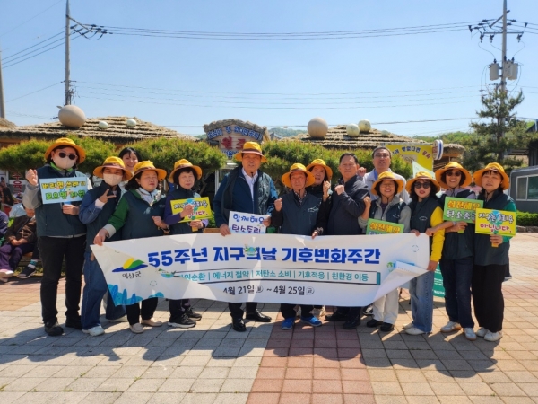 [충청25시] 예산군은 지난 25일 예산군지속가능발전협의회와 함께 ‘제55주년 지구의 날’을 기념해 예산시장 일원에서 탄소중립 실천 캠페인을 추진했다.