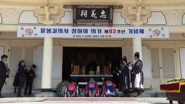 [충청25시] 예산군은 지난 4월 29일 덕산면 충의사에서 매헌 윤봉길 의사의 상하이 의거 제93주년을 맞아 기념제를 개최했다고 밝혔다.