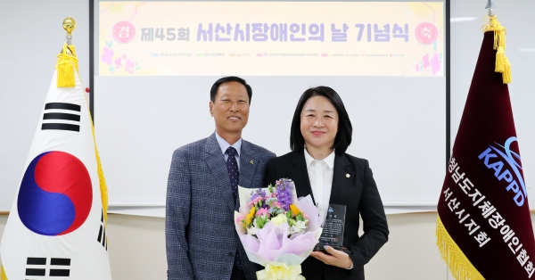 이날 행사에서 한석화 의원은 “장애인의 날을 맞아 뜻깊은 상을 받게 되어 매우 영광스럽고 감사하다”며 “앞으로도 장애인과 비장애인이 더불어 살아가는 따뜻한 서산시를 만들기 위해 의정활동에 최선을 다하겠다”고 수상 소감을 밝혔다.