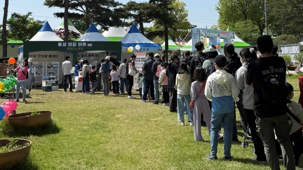 홍성문화도시 홍보 부스에서는 ‘홍성의 맛과 멋’을 주제로 ‘미감 마켓’ 체험 프로그램을 운영하며 홍성의 역사 인물, 특산물, 관광자원을 소개했다.