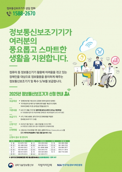 군 관계자는 “이번 사업은 정보통신 활용에 어려움을 겪는 장애인의 정보격차 해소와 사회 참여 확대에 실질적인 도움이 될 것”이라며 “군민들이 혜택을 놓치지 않도록 특수학교, 장애인 단체, 누리집 등을 통해 적극 홍보하겠다”고 말했다.