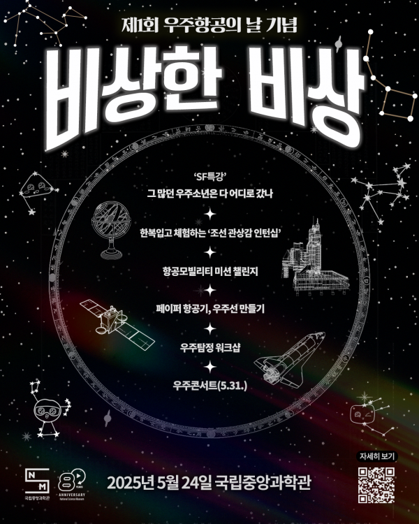 [충청25시] 국립중앙과학관은 올해 처음 국가기념일로 지정된‘우주항공의 날’을 맞아 과학문화행사 ‘비상한 비상’을 5월 24일 토요일 하루 동안 개최한다.