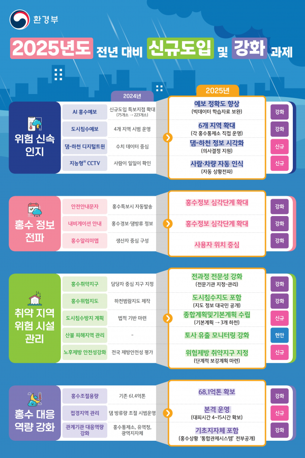 [충청25시] 환경부는 자연재난대책기간이 시작하는 5월 15일 올해 여름철 홍수피해 예방을 위한 ‘2025년 여름철 홍수대책’을 발표한다.