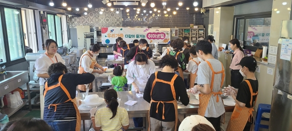 [충청25시] 아산시(시장 오세현)가 17일 관내 제과제빵학원에서 보호아동 가족 9가구를(24명) 대상으로 가족친화 프로그램 ‘사랑을 반죽하고 행복을 구워요’를 진행했다.