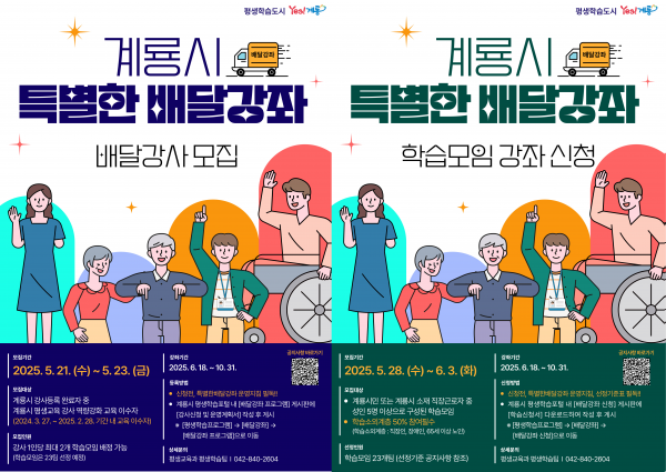 [충청25시] 계룡시는 21일부터 23일까지 ‘2025년 특별한 배달강좌’ 운영을 위한 강사를 공개 모집한다고 밝혔다.