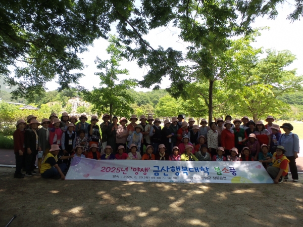[충청25시] 금산군보건소는 자연 속 신체 활동을 통해 건강을 증진하고 문화적 학습 기회를 얻는 뜻깊은 시간을 가지기 위해 지난 20일부터 22일까지 일정으로 경남 함양군 상림공원에서 ‘양생 금산행복대학’ 2025년 봄 소풍에 나섰다.