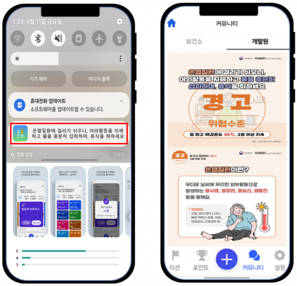 [충청25시] 보건복지부와 한국건강증진개발원은 폭염이 본격적으로 시작되기 전인 오는 5월 26일부터 ‘오늘건강’앱을 통해 어르신 맞춤의 폭염 대응 행동요령 안내를 시작한다고 밝혔다.