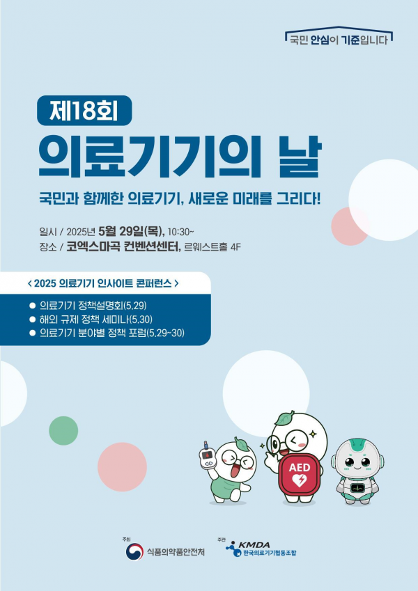 참고로 기념식과 함께 5월 29일부터 30일까지 ‘2025 의료기기 인사이트 콘퍼런스’를 통해 최근 개발 동향·이슈, 규제 등 정보를 공유하는 소통의 장을 마련한다.