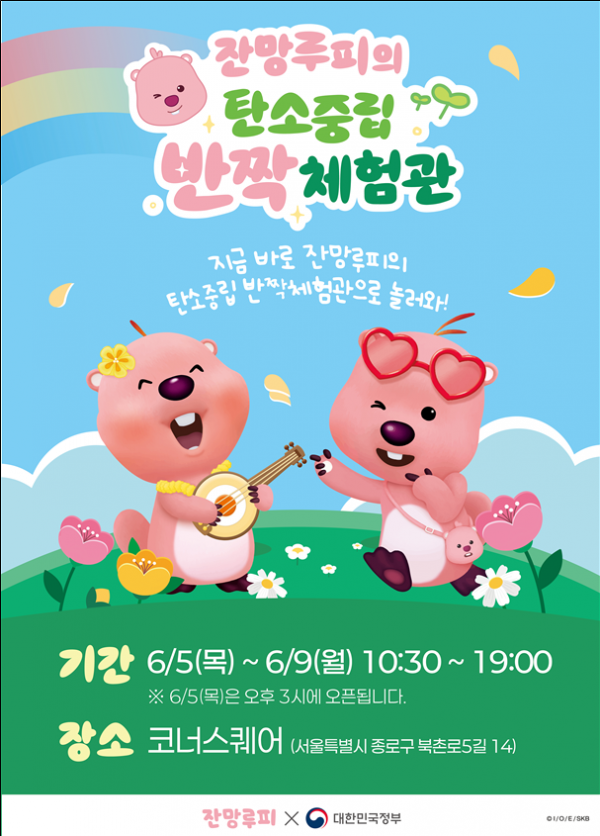[충청25시] 문화체육관광부는 ‘환경의 날’을 맞이해 국산 인기 캐릭터 ‘잔망루피’ 와 함께하는 탄소중립 반짝체험관을 6월 5일 오후 3시, 서울 북촌에서 개관, 9일까지 운영한다.